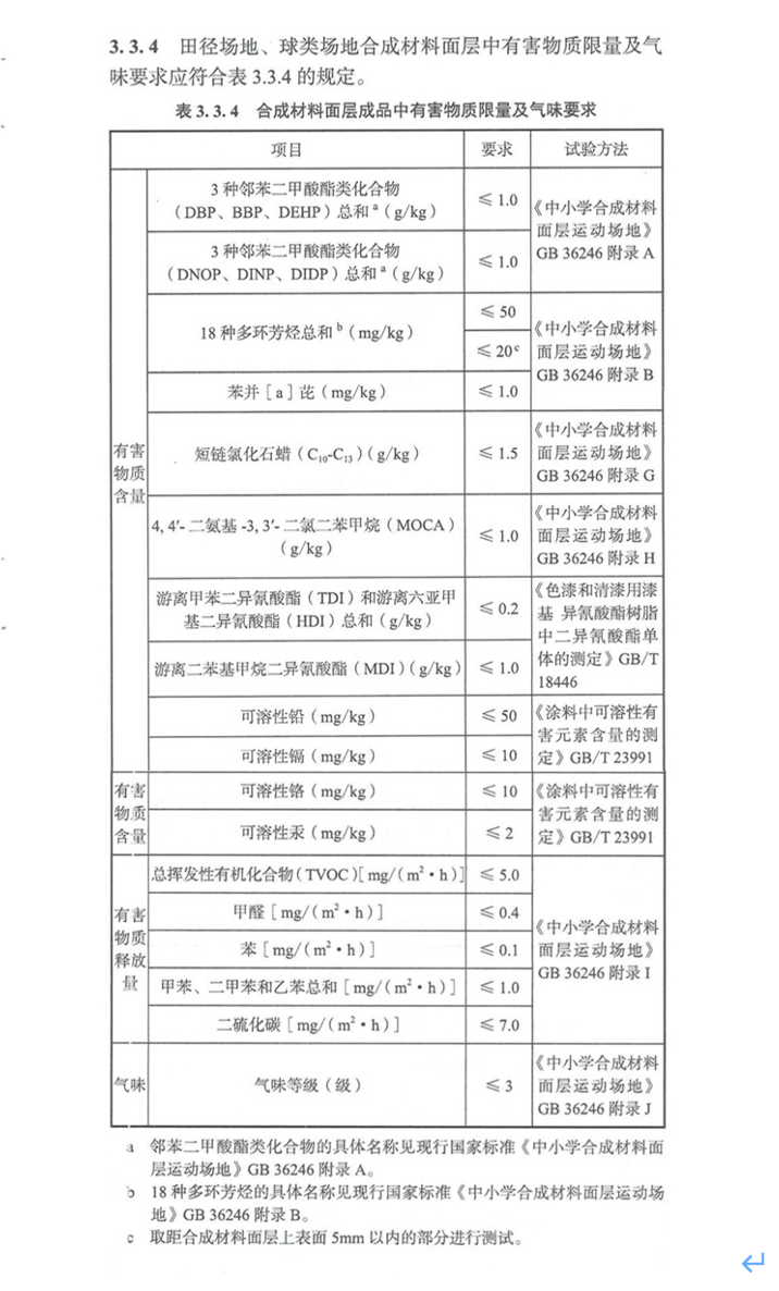 ▲ 合成材料面层成品中有害物质限量及气味要求