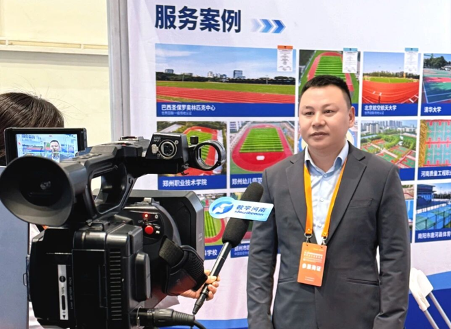 2026年3月6日至8日,以“智慧后勤·平安校园 共筑教育新未来”为主题的第二届河南教育后勤博览会暨校企对接洽谈会在郑州举行。展会汇聚了来自教育主管部门、高校及中小学的后勤负责人,共探校园建设新路径。广东柏胜新材料股份有限公司(以下简称“柏胜新材”,证券代码:874893)携全系产品及整体解决方案亮相,其创新成果集中体现的“科技+环保”理念,与河南省当前着力推进“绿色平安校园”建设方向相契合,受到河南电视台的重点关注与专题报道。柏胜新材华北大区总监郭颖兵在现场接受采访,分享了公司在高质量体育设施科技升级方面的实践与思考。