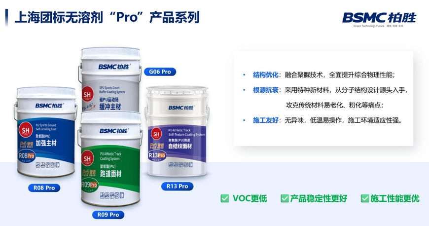 二十余年来,柏胜专注运动场地面层新材料的研发与应用,在低碳环保配方、运动性能优化及长效耐候性等核心技术领域取得多项突破,拥有30多项有效专利,全线产品均符合国家现行标准并获中国环境标志产品认证。以上海团标无溶剂“Pro”系列产品为例,从环保体系的源头设计入手,杜绝有害物质的添加;通过特种材料与分子结构创新,在根源上攻克传统材料易老化、粉化等痛点;并融入聚脲等技术进行优化,在全面提升物理性能、优化运动反馈的同时,兼具施工友好、无异味、低温易操作和强环境适应性等优点,保障工程品质稳定可控。